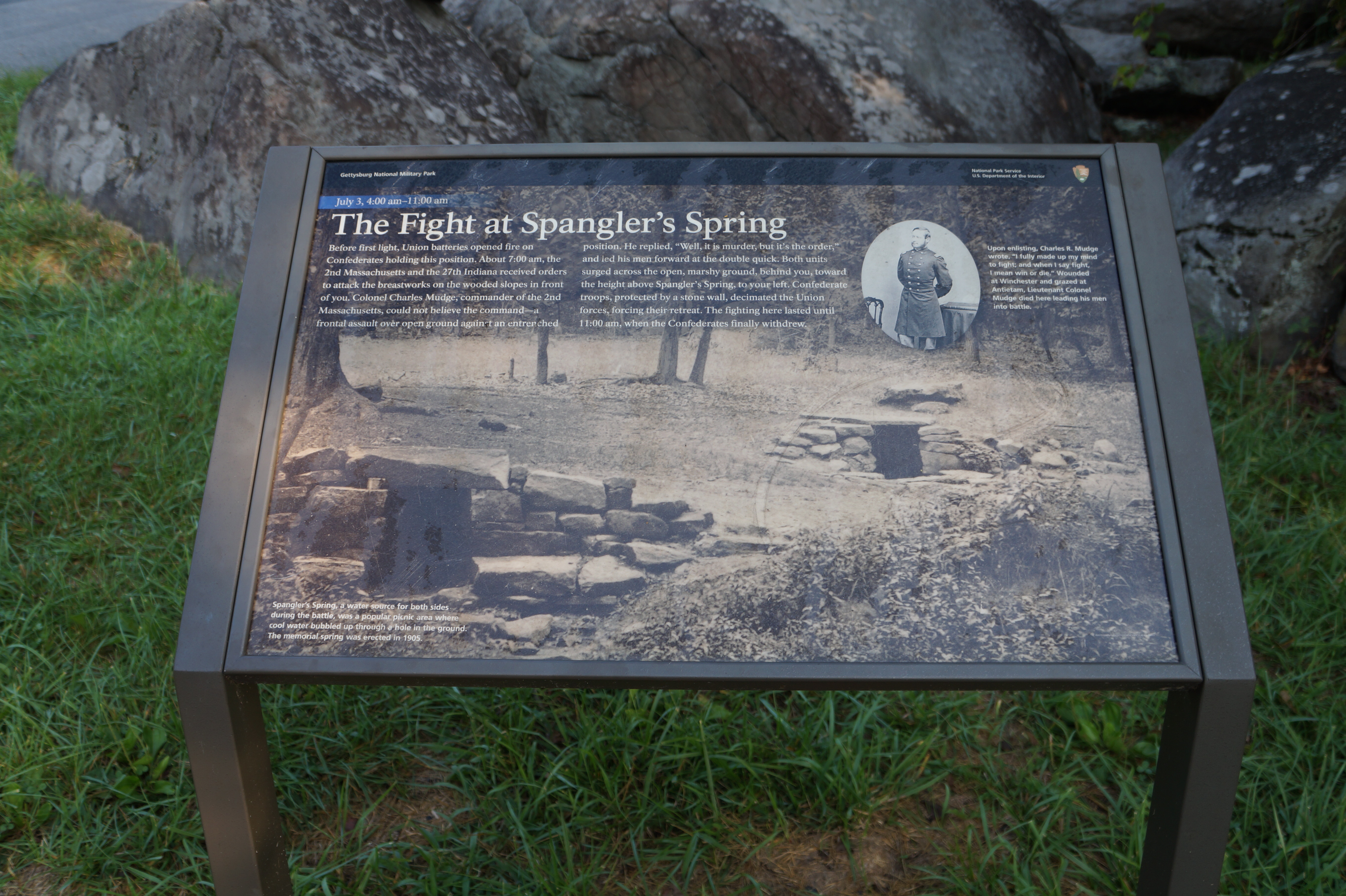 During the battle, this area changed hands between both Union and Confederate forces, and at times the spring was between the opposing lines.